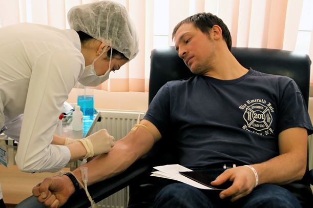 Сдавая кровь, московские пожарные и спасатели помогают пострадавшим