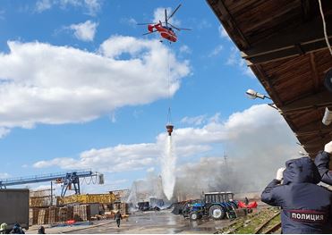 На пожаре работал новый вертолет Ка-32А11ВС, который недавно заступил на дежурство и прекрасно показал свои технические возможности в ходе тушения крупного пожара.