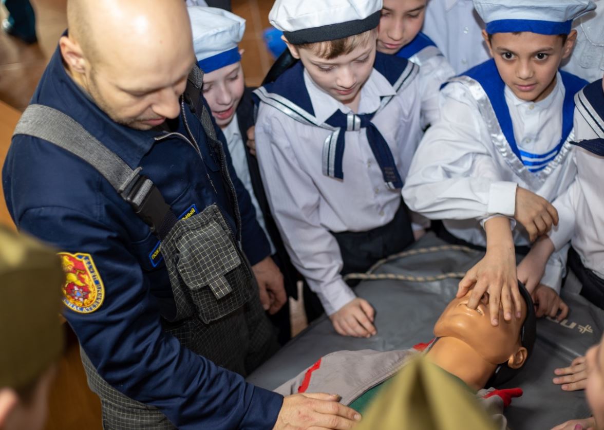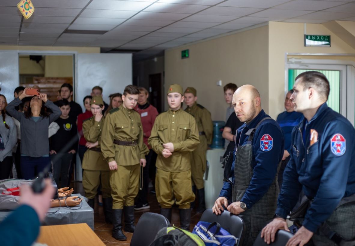 Спасатели поздравили ребят с праздником, рассказали, как он появился, какие ещё памятные даты военной истории есть у нас в стране. Затем рассказали о профессии спасателя, какие трудности встречаются во время дежурства, в каком учебном заведении можно получить эту профессию.