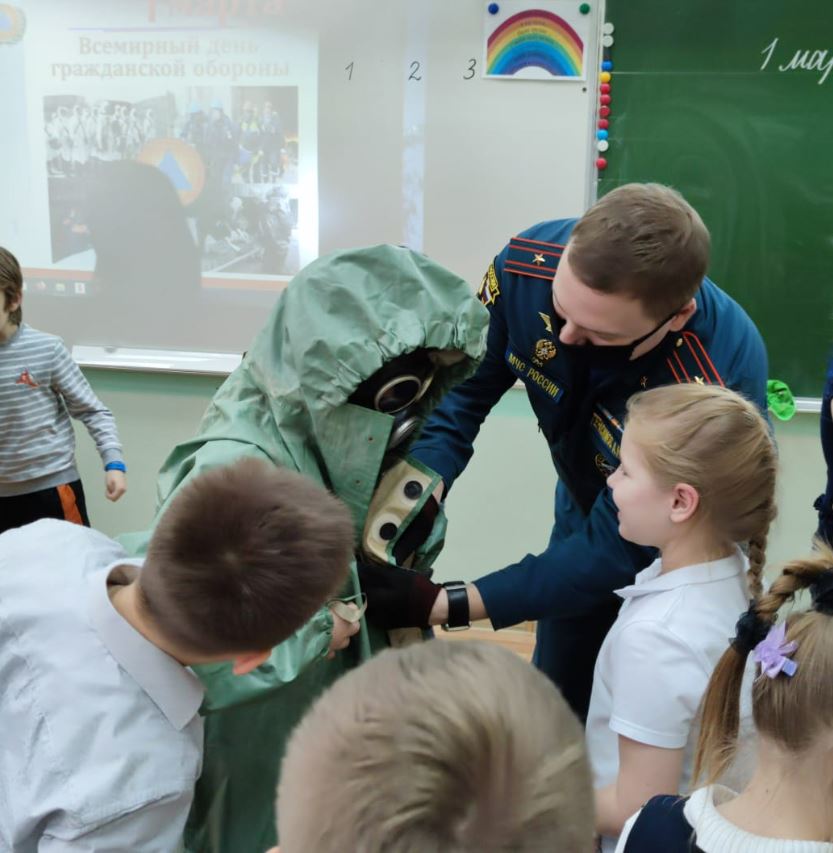На занятиях детей познакомили с сигналами и знаками гражданской обороны. В некоторых школах учащиеся пробовали одевать средства химзащиты, учились обращаться с огнетушителем и оказывать первую помощь.