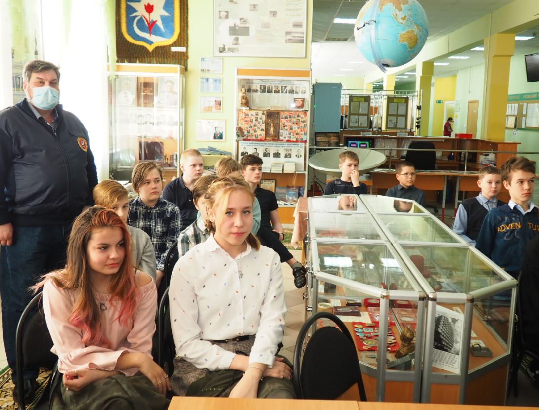 Встреча была приурочена к 35-летию трагедии на Чернобыльской АЭС. В школе есть небольшой музей, посвящённый становлению ракетных войск и их создателям, есть в нём и раритеты из далёкого советского прошлого. Вот в этом месте и прошло мероприятие, посвящённое трагедии на Чернобыльской АЭС.