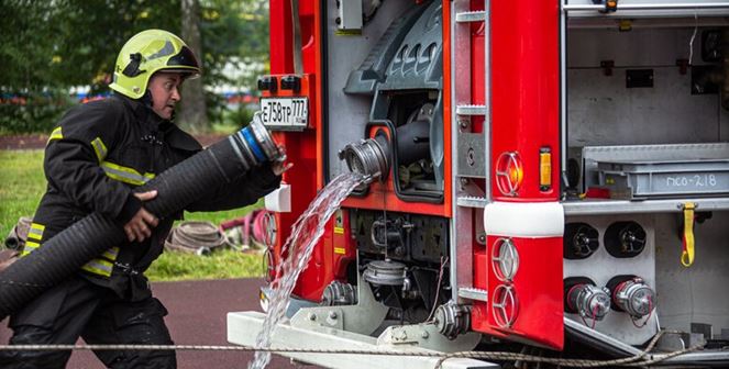 На соревнованиях пожарным предстояло на скорость выполнить надевание боевой одежды, проложить магистральную и рабочую линии на два пожарных рукава, забрать воду из открытого водоисточника, подать два ствола на третий и четвертый этажи учебной башни с помощью трехколенной и штурмовой лестниц и наполнить мишени, имитирующие возгорания.