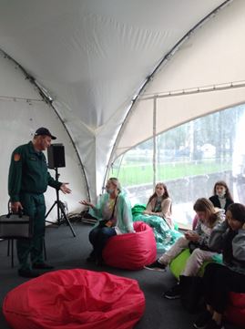 У павильона № 58 «Центр Слово» сотрудники пожарно-спасательного отряда № 216 обеспечивали пожарную безопасность на мероприятии «День Молодёжи Северо-Восточного округа». Проверили территорию, павильон, наличие противопожарного оборудования, провели профилактические беседы.