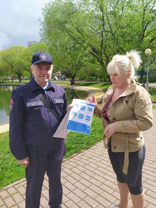 Погода в выходной день была прохладная и прогуливающихся на новом месте отдыха было немного. С некоторыми из них Сергей Чернов провёл профилактические беседы о необходимости соблюдать правила поведения в зонах отдыха вблизи водоёмов, а также правила пожарной безопасности в парковых зонах. Раздал памятки.