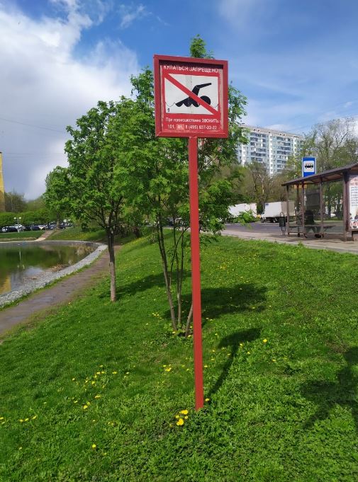 Напоминаю ещё раз, что пруды в Северо-Восточном округе декоративные и купаться в них запрещено, об этом напоминают знаки и информационные щиты, расположенные вдоль берега.