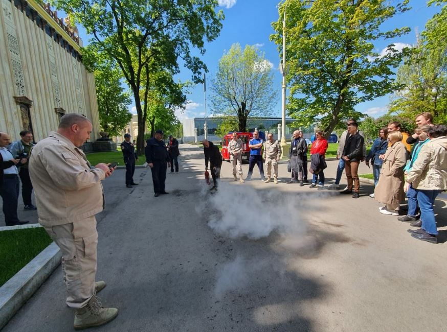«Цель таких тренировок – проверить готовность персонала павильона и работников ПСО № 216 действовать по сигналу пожарной опасности, приобрести реальные навыки по поведению и действиям в случае чрезвычайной ситуации. А также отработать приёмы и способы эвакуации, научиться посетителям выставки и обслуживающему персоналу правильно использовать средства пожаротушения.