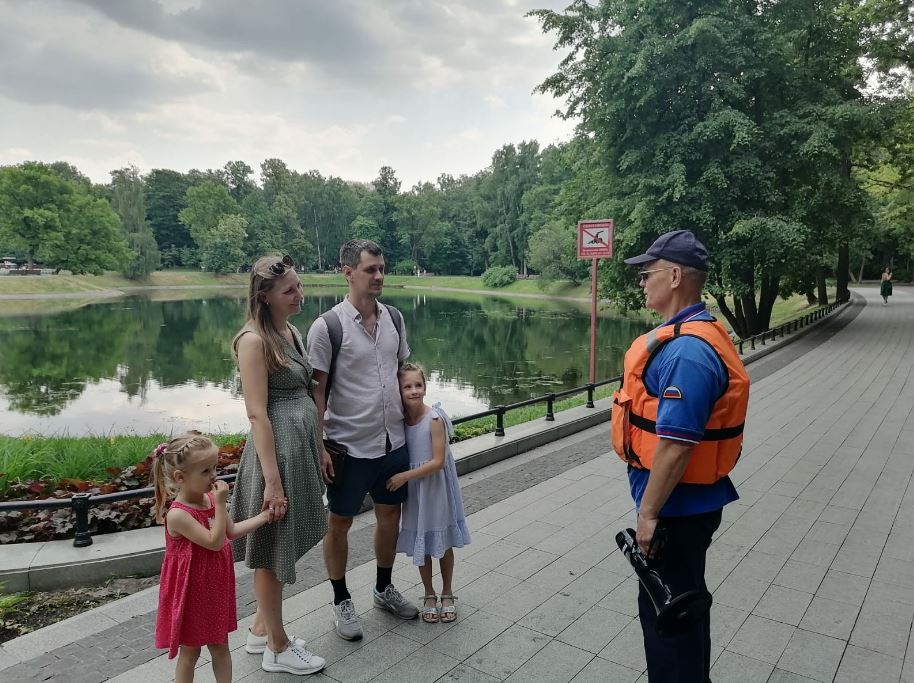 Всего на территории выставочного комплекса находится 6 водоёмов, относящихся к объектам культурного наследия федерального значения. По всему периметру прудов работниками отряда были проверены информационные щиты и знаки, запрещающие купание. Ежедневно пожарные и спасатели проводят с отдыхающими профилактические беседы, раздают памятки о правилах поведения на водоёмах.