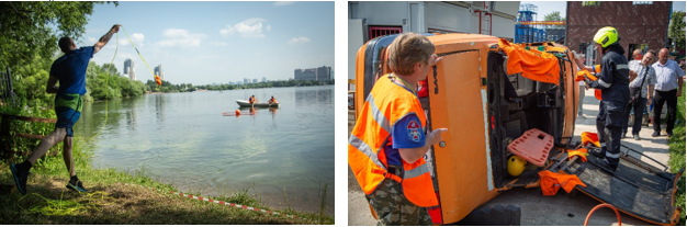 В конкурсе профессионального мастерства по профессии «спасатель» состязались 18 работников Пожарно-спасательного центра, Московского авиационного центра и Московской городской поисково-спасательной службы на водных объектах, а также представители ГБУ «Автомобильные дороги».